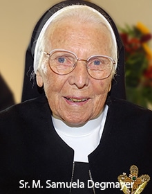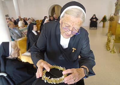 Das 60. Professjubiläum feierte Schwester M. Caritas Maier. Von 1961 bis 2013 stand sie im Dienst für Menschen mit Behinderung, ab 1971 als Gruppenleitung in Pfaffenhausen bei Sehbehinderten. Danach half sie bis 2018 im Konvent von Pfaffenhausen. Auf 40 Jahre blickte Schwester M. Franziska Seger aus Deining, Diözese Eichstätt, zurück. Sie ist Hauswirtschafterin, Kinderpflegerin und Altenpflegerin. Diesen Beruf übte sie von 1982 bis 1990 aus. Nach Stationen als Hauswirtschaftsleitung im Heim St. Vinzenz und im Mutterhaus ist sie seit 2017 in Breitbrunn für Hauswirtschaft verantwortlich und als Konventvikarin eingesetzt.